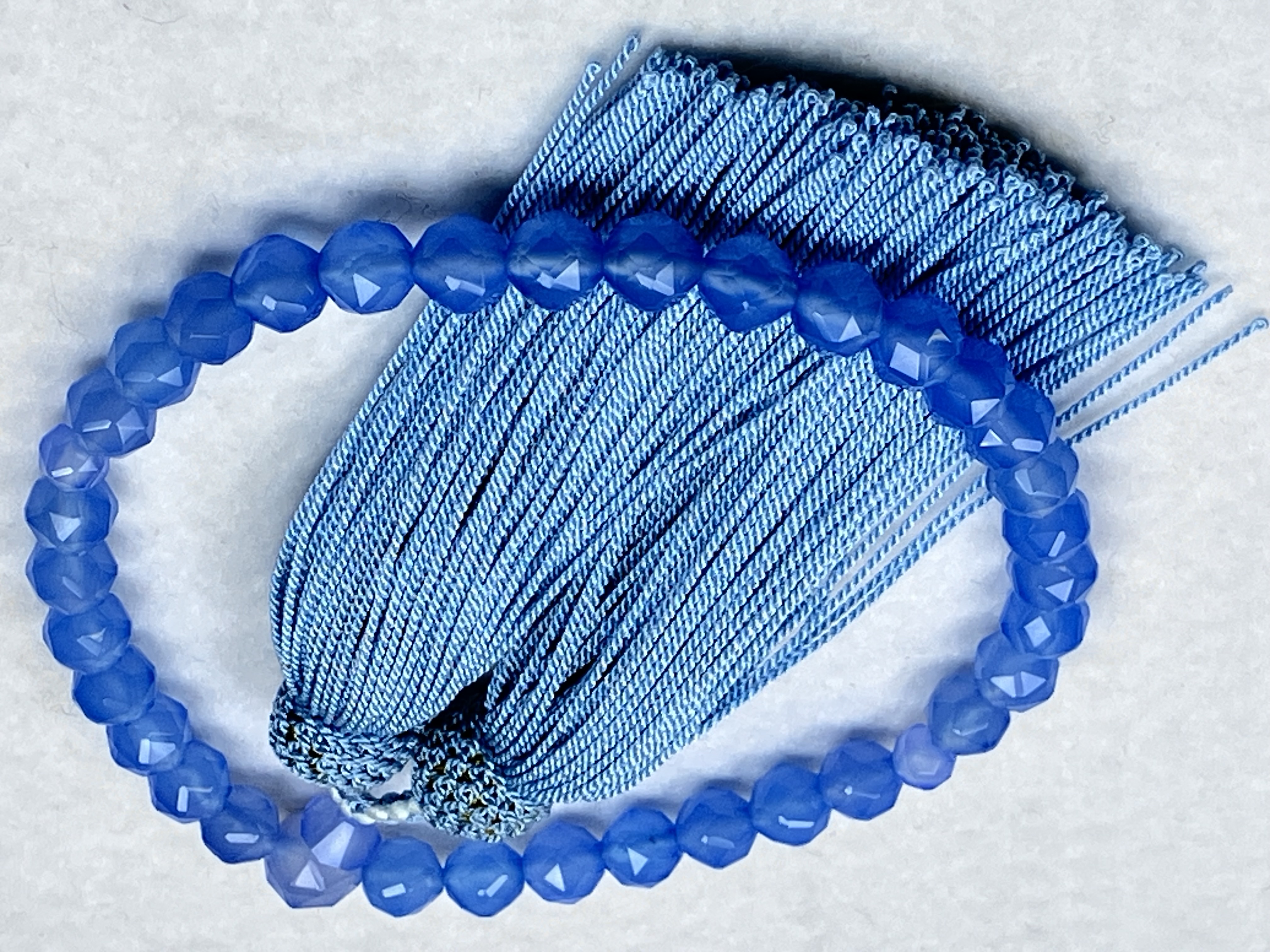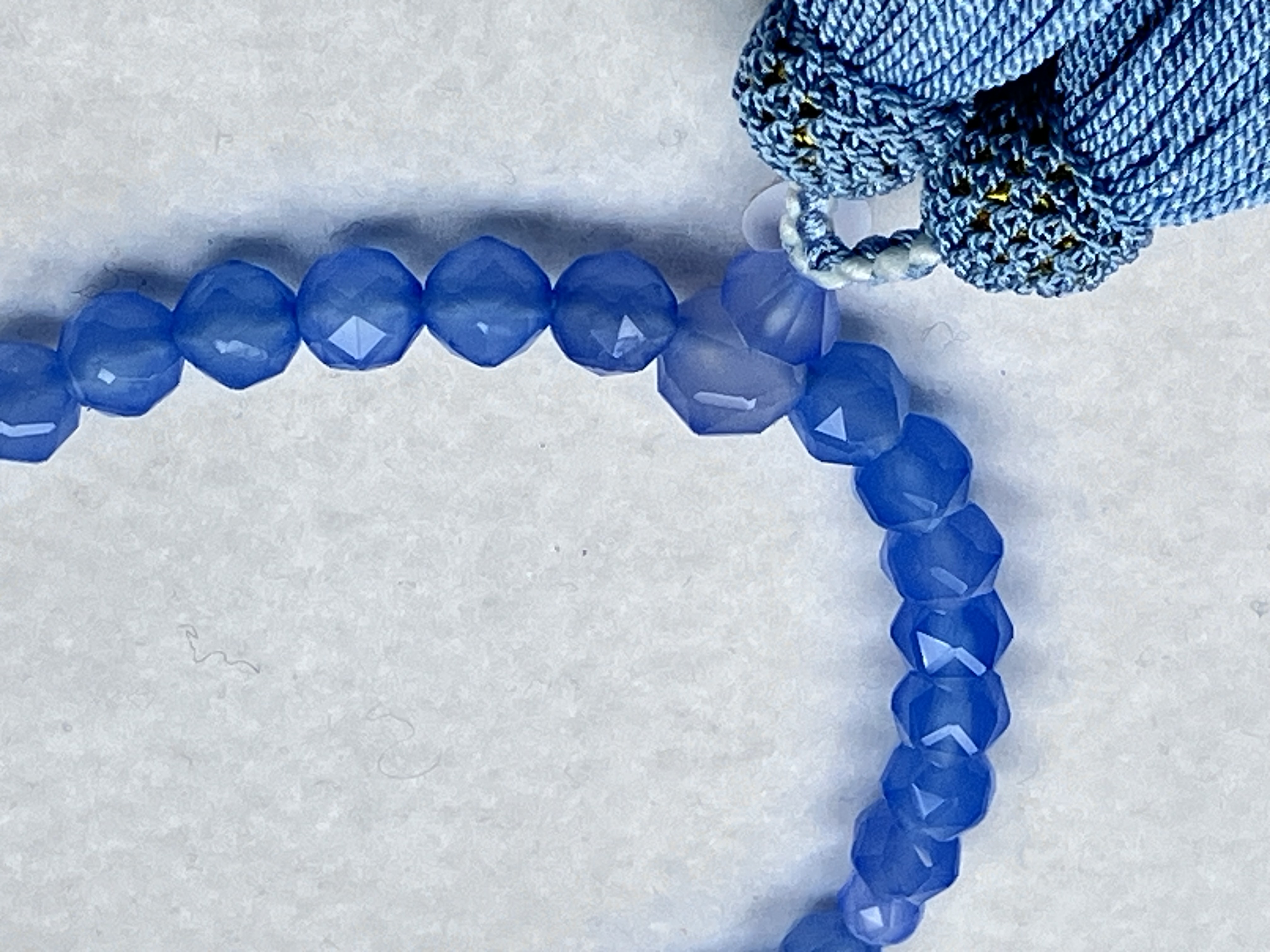 ブルーカルセドニー ジュエリーカット8㎜片手 正絹頭房